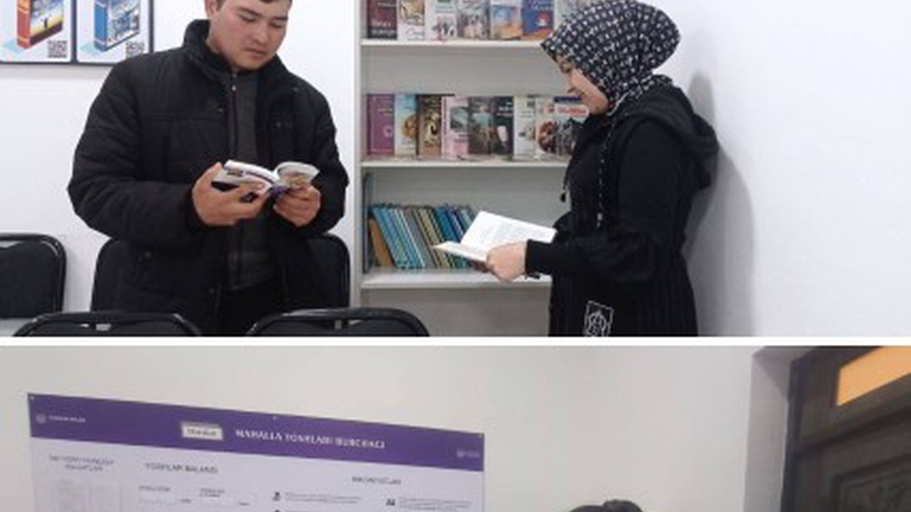 O'zbekiston Respublikasi Prezidentining "Mahallalarda yoshlar bilan ishlash tizimini tubdan takomillashtirish chora tadbirlari tòĝrisida" 2022 yil 19 yanvardagi PQ-92-son qarori ijrosini taminlash maqsadida, Yoshlar bilan ishlashni yangicha boshqaruv mehanizimlarini tashkil etish, mahallalarda yoshlarni bo'sh vaqtlarini mazmunli o'tkazish va ularni intellektual salohiyatini rivojlantirish hamda kitobxonlik madaniyatini oshirish, kitob mutoalasiga bo' …